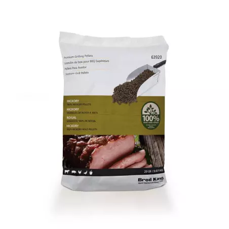 Les pellets au goĂ»t Hickory ont un goĂ»t de fumĂ©e intense. Ils s’accordent parfaitement avec le porc, le boeuf, la volaille et les lĂ©gumes.