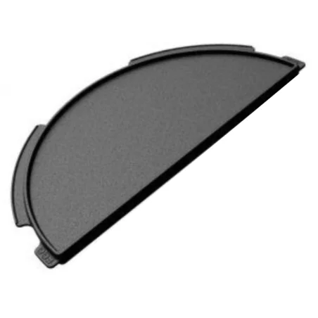 La plancha en fonte en forme demi lune permet de faire cuire tous types d’aliments sur une surface plate.